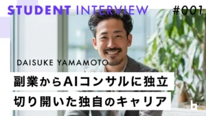 生成AIの需要が高まる今、未経験から最短で習得したい人にスクールは最適な選択肢です。体系的なカリキュラムと講師のサポートにより、独学よりも効率よく実務スキルを身につけられるでしょう。